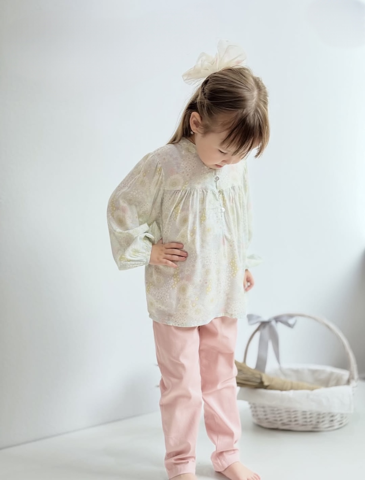 Laissez vous séduire part cet ensemble bébé fille plein de poésie, où chaque détail a été pensé pour sublimer le quotidien des tout-petits. La blouse fluide aux motifs délicats, avec ses fronces raffinées et sa coupe aérienne, apporte une touche chic et intemporelle, tandis que le pantalon rose poudré, confortable et facile à porter, complète harmonieusement l’ensemble.