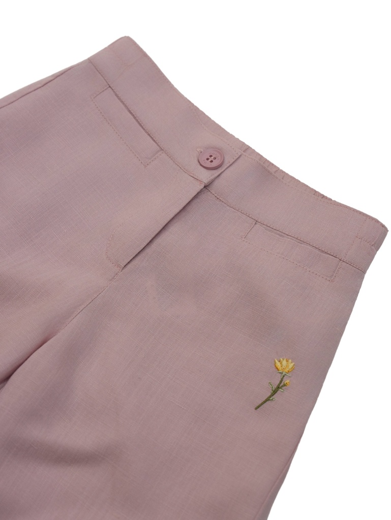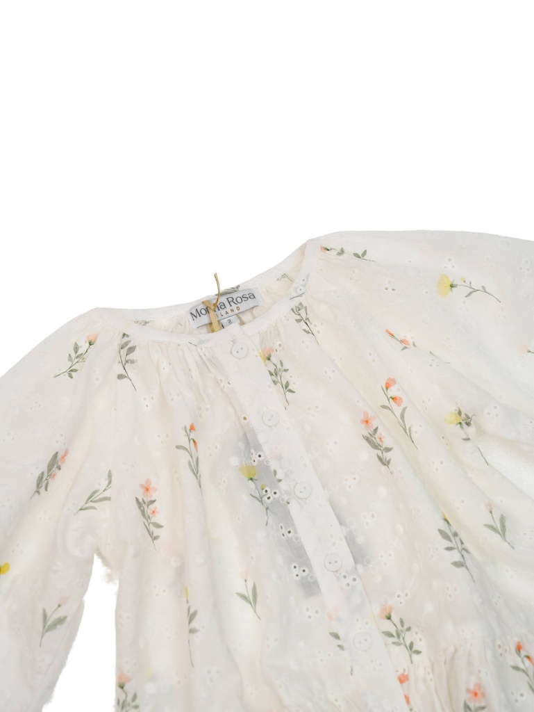 Zoom sur cet ensemble fille délicat aux teintes poudrées et aux détails fleuris, parfait pour sublimer les petites filles avec charme et légèreté, en toute occasion.