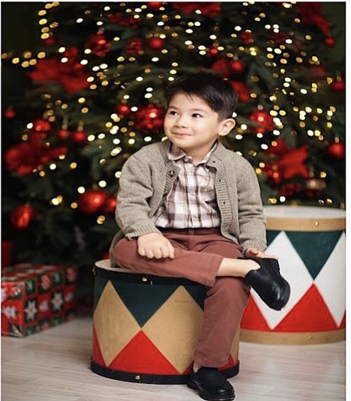 Ensemble enfant garçon, il se compose de 03 pièces: chemise à carreaux claire 100% coton, cardigan foncé 20% laine 10% polyamide 60% acrylique et 10% PBT, pantalon foncé 95% coton et 5% élasthanne.